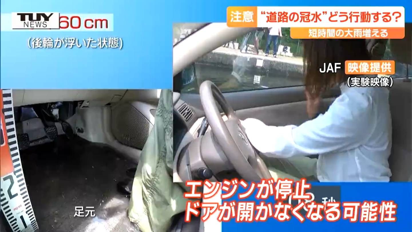 JAF山形支部 野川智伸 さん「ドアの先を超えてしまうと車内に水が入る可能性がある。車内にはいろんな配線があるので、すぐにエンジンをかけたりしない」
