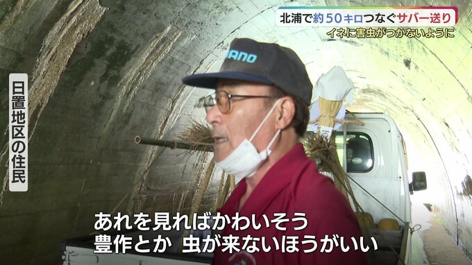 わら人形は、日置地区に入ってすぐの小さなトンネルの中に置かれました。置かれた集落では、「早く次に送らないと害虫が周囲に散ってしまう」などさまざまな言い伝えがあります。