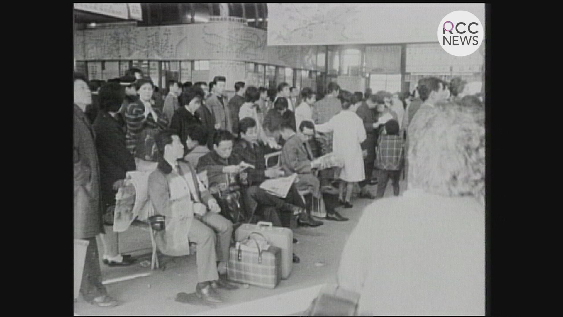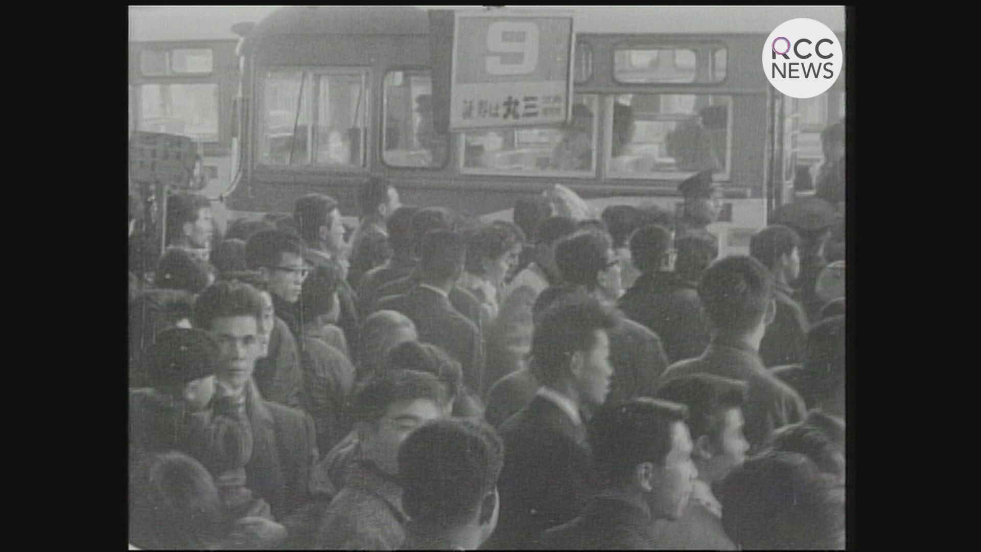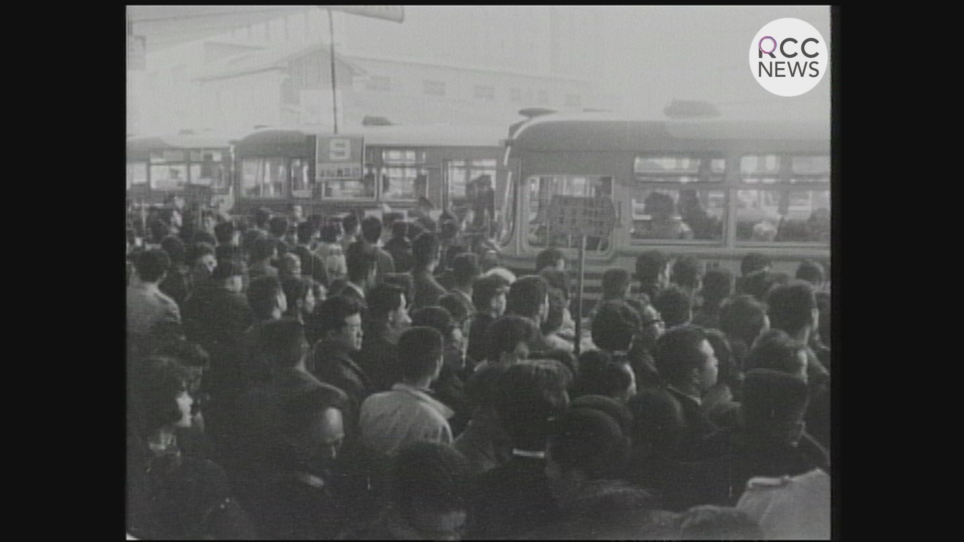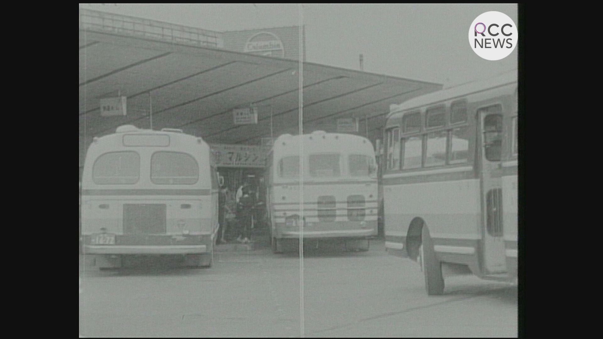 現在の広島バスセンターがオープンする11年前、1963年の秋分の日のバスセンターの様子です。秋の行楽シーズンを迎えてバス乗り場は多くの利用客でごった返しています。初代の広島バスセンターが誕生したのは1957(昭和32)年。全国初の一般バスターミナルとして現在と同じ場所に誕生しました。