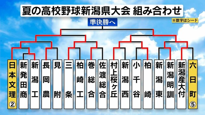 中盤までリードを許していた新発田南は6回表に追いつくと、7回と8回に得点を重ね、十日町を突き放しました。23日に予定されている準決勝に駒を進めています。