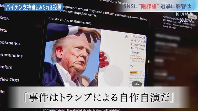 11月に控えたアメリカ大統領選挙。トランプ前大統領が選挙集会で銃撃される波乱の展開になっています。SNS上には“陰謀論”や“偽情報”が溢れる事態に。深まる分断・・・選挙戦の行方はどうなるのでしょうか。
