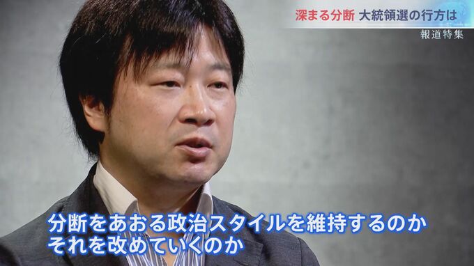 「トランプ氏は分断をうまく活用して1期目の大統領に2016年になった。敵を作ってその敵に対して攻撃することで自分の支持者を固められるということだった。分断をあおる政治スタイルを維持するのか、それともそれを改めていくのか。これを我々としても見極めていく必要があると思います」