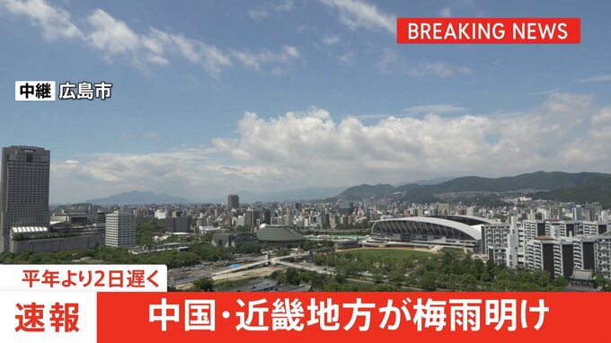 気象庁は先ほど(21日午前11時)、中国地方と近畿地方が「梅雨明けしたとみられる」と発表しました。気象庁は午前11時、中国地方と近畿地方が「梅雨明けしたとみられる」と発表しました。どちらの地方も平年と比較…