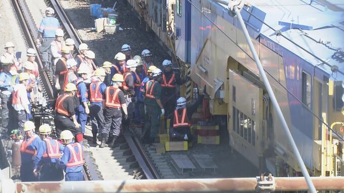 東海道新幹線は、保守用の車両が脱線し、浜松と名古屋間の上下線で運転を見合わせています。復旧には相当な時間がかかる見込みで、夕方まで運転再開の見込みはたっていません。