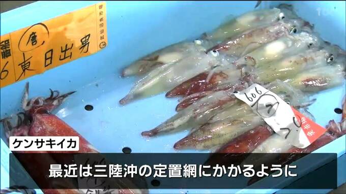 宮城県気仙沼市では今シーズン、海水温の高い西日本の海で多く見られるケンサキイカが連日、水揚げされています。22日朝の気仙沼市魚市場。気仙沼港に水揚げされたばかりのケンサキイカが並びます。ケンサキイカは…