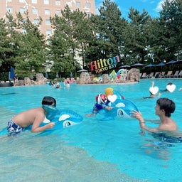「結婚式から17年…早いなぁ」「2人で築いてきた家族を大切に」「でも今度は2人きりでも来たいねっとも話しました」としてプールで子供たちとはしゃぐ写真を載せています。