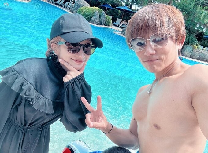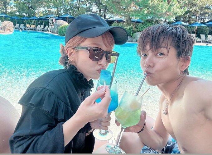 杉浦さんは、「17回目の結婚式記念日はプールで」と書き出し、ラブラブな2ショット写真をアップ。