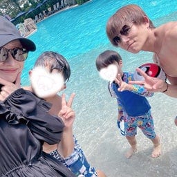 また、辻さんもブログを更新し、「7.19♡」として結婚記念日を報告し、「午前授業+今日から夏休みなのでソラ、コア一緒にプールに行って来ました❤️」と次男と三男と夫・杉浦さんとの4Sを公開。