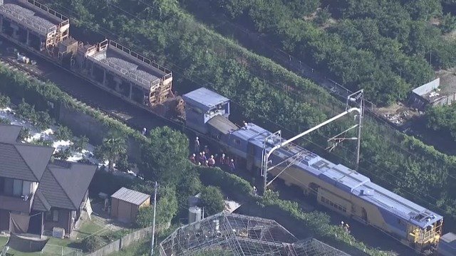 「愛知県蒲郡市上空です。東海道新幹線の上り線で保守用車両が脱線しています。衝突した模様です」