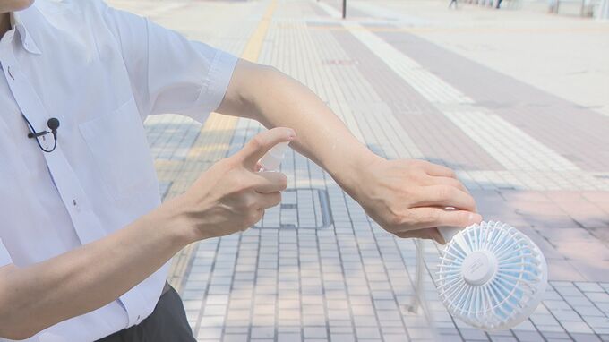 皮膚に水を吹きかけファンで風を送ると…25℃前後に