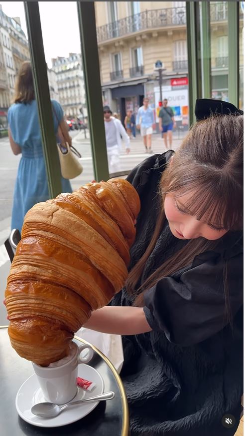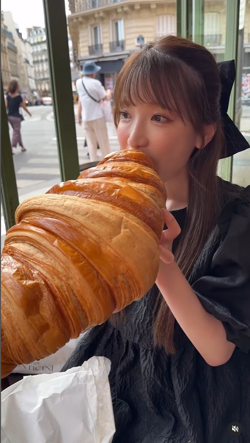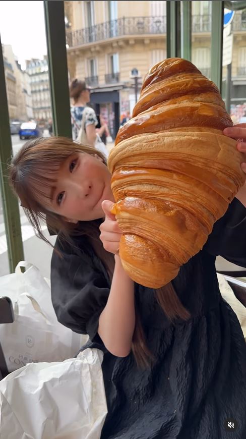 もえのさんは、〝フランスのデカ盛りチャレンジ〟と題して、顔の何倍もある超巨大クロワッサンを食べる動画をアップ。映像の中には、先端をカプチーノにつけて食べたり、スーパークロワッサンから顔を出したりするものなど、幸せそうなもえあずさんが収められています。