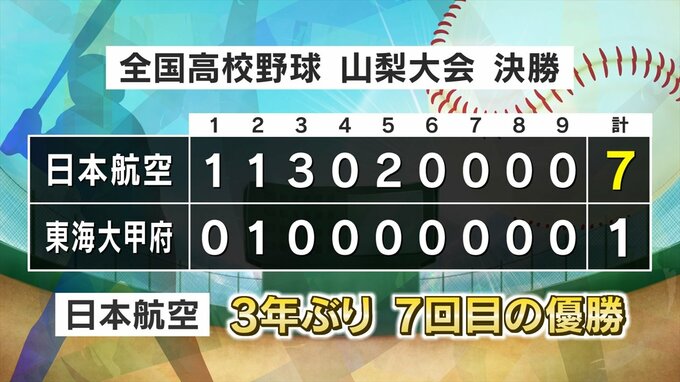 32チームが出場した山梨大会は23日に決勝戦が行われ、日本航空が7対1で東海大甲府を破り、3年ぶり7回目の夏の甲子園出場を決めました。