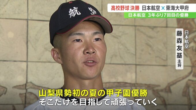 「この大会『日本一泥臭いチーム』というスローガンで戦ってきたので、甲子園でも日本一粘り強く粘り強い戦いができたらと思う。山梨県勢初の夏の甲子園優勝、そこだけを目指して頑張っていく」