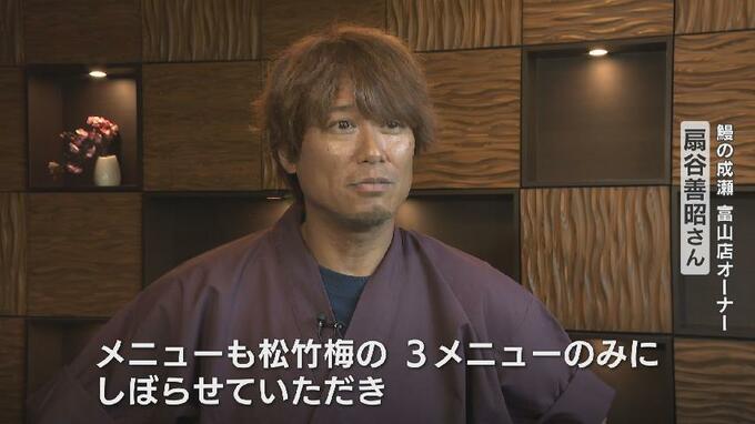 鰻の成瀬富山店オーナー 扇谷善昭さん:「メニューも松竹梅の3メニューのみにしぼらせていただいて、余分な材料費とか食材費がかからないように考えています」