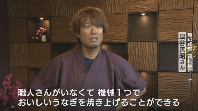 鰻の成瀬富山店オーナー 扇谷善昭さん:「営業時間の短縮、3時間ずつで(1日)6時間。あとは、職人さんがいなくて機械1つでおいしいうなぎを焼き上げることができます。全国の鰻の成瀬では初心者でも簡単にうなぎを焼けるよう特殊な機械を使っていて、人件費などのコストをカットしています」