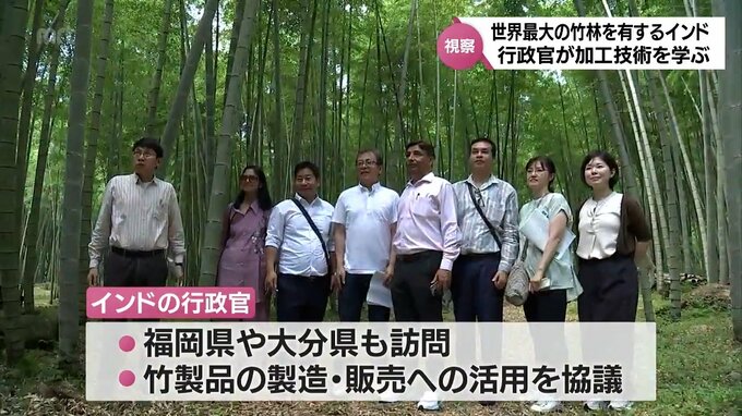 22日から宮崎県内をインドの行政官が訪れています。その目的は竹の活用方法の視察です。23日は竹製品を手がける国富町の農業法人を訪れ、加工場などを見学しました。これは、日本の竹の活用方法について知ってもら…