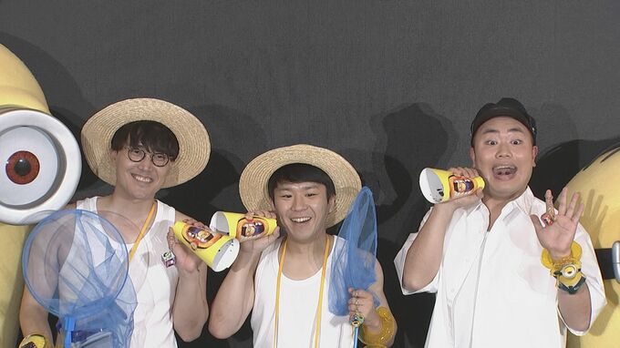 映画『怪盗グルーのミニオン超変身』の“超”宣伝アンバサダーを務めるお笑いトリオ「ハナコ」(秋山寛貴さん、岡部大さん、菊田竜大さん)が「イオングループ3社合同 夏の超変身コラボイベント発表会」に登壇しました。