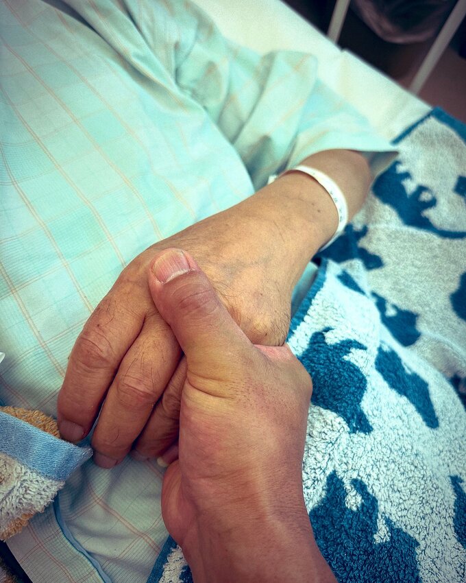 難波さんは「父の容態は更に良くなくて意識が遠のいていってます。でも沢山話しかけてます」と、父親の手を握る写真をアップし、現状を報告。