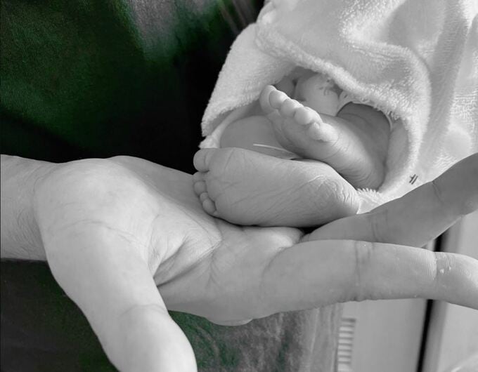 吉原さんは、「ご報告です」と題し、お子さんの足の写真を投稿。