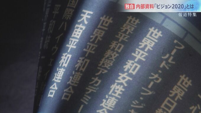 これは、過去に一部の幹部だけに配布されたという極秘の組織図だ。萩生田氏が関係を認めた「世界平和女性連合」や、安倍元総理がメッセージを寄せた「天宙平和連合」などは「摂理機関」と表現されている。