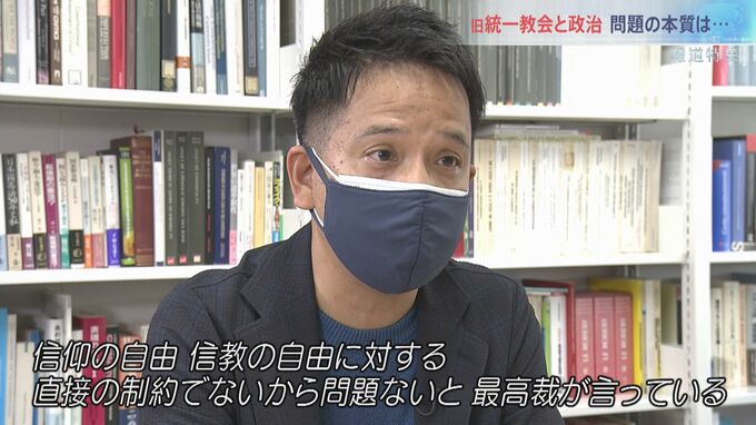 旧統一教会をめぐっては、政治と宗教の関係が問題とされるが、憲法学者の南野教授は本質は違うと指摘する。