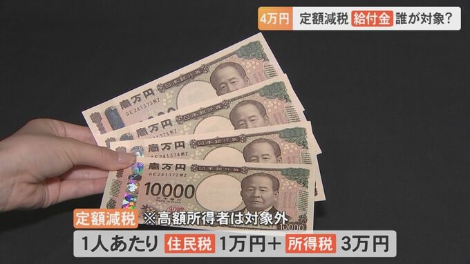 今回の定額減税では、1人あたり住民税1万円と所得税3万円、合わせて4万円が減税されます。
