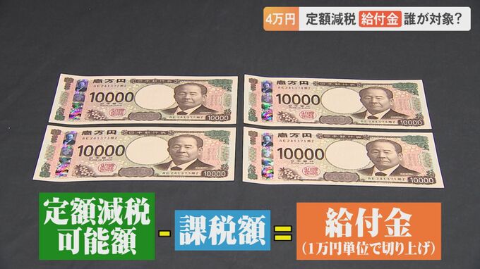 減税しきれない人たちについては、定額減税可能額と課税額との差額を1万円単位で切り上げた額を、給付金として受け取ることができるんです。