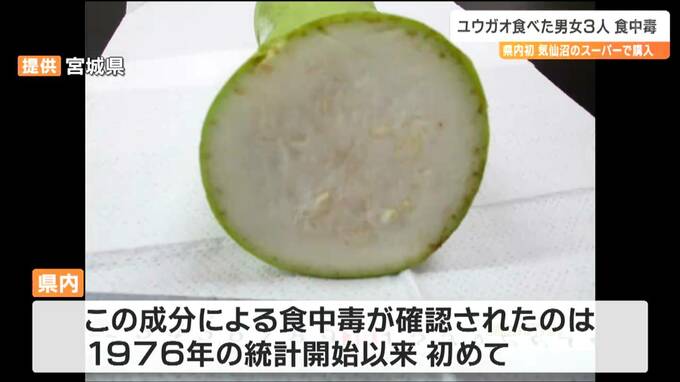 宮城県によりますと22日午後9時頃、気仙沼市内のスーパーマーケットで購入したユウガオを食べた30代から60代の男女3人が腹痛や下痢などの症状を訴えました。県は症状の特徴からユウガオに含まれる苦味成分の「ククルビタシン類」が原因の食中毒と断定しました。県内でこの成分による食中毒が確認されたのは1976年の統計開始以来、初めてです。