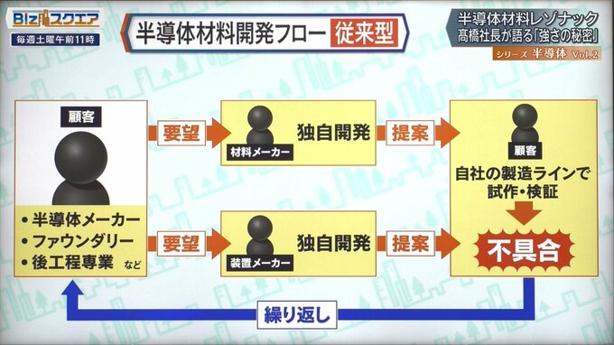 これまでは顧客である半導体メーカーやファウンダリーなどが材料メーカーや装置メーカーにそれぞれ要望を出し、そこで開発したものを顧客が試作検証を行い、不具合があればメーカーに作り直してもらうという作業が必要だった。