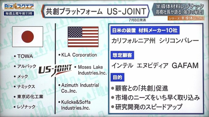 「US-JOINT」というものを発表した。シリコンバレーに作る。なぜシリコンバレーかというと、今AIの半導体の設計はエヌビディアが1人勝ちしている状況。いずれ、必ず「GAFAM」というGoogle、Apple、Amazon、Facebook、Microsoftが独自のAI半導体の設計を行ってくると我々は考えている。そのためにそれらの会社が存在するシリコンバレーに「JOINT2」と同じようなコンソーシアム装置と材料を合わせたコンソーシアムを作って「JOINT2」よりは先、5年、10年後に新しいコンセプトを「GAFAM」などの方々とすり合わせをしながら考えていき、活動していこうと思っている。