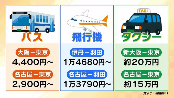 高速バス・飛行機・タクシーという選択肢もあります。タクシーは新大阪から東京で約20万円ですが、4人で合わせて乗れば一人当たりは5万円。様々な手段を想定しておくことが重要かもしれません。
