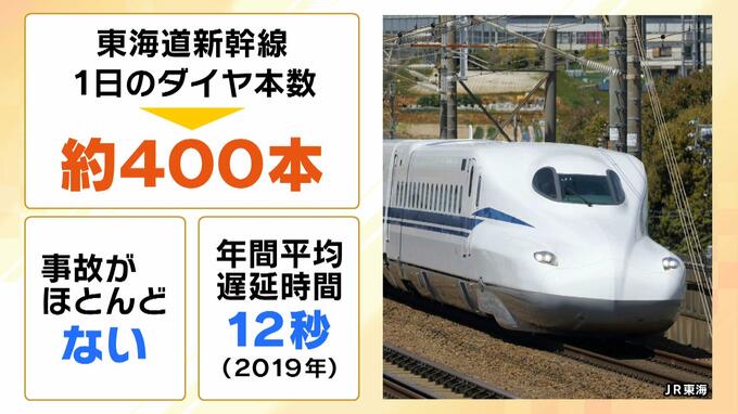 東海道新幹線は1日に多い日で400本近く。大阪の環状線も1日に500本弱だということで、匹敵するほどたくさんの新幹線が走っています。驚くべきは事故の少なさと、遅延時間。