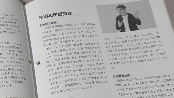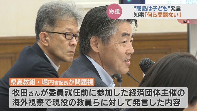 堀内書記長が問題視したのは県の教育委員・牧田和樹さんが委員就任前に参加した経済団体主催の海外視察で現役の教員らに対して発言した内容です。