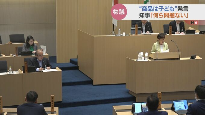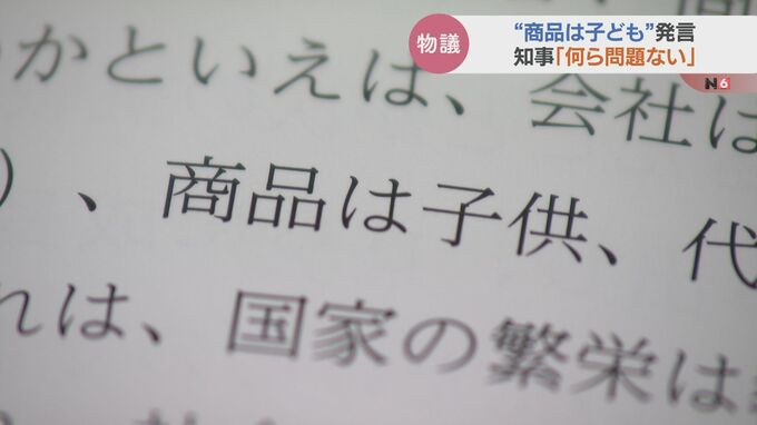 新田知事「子どもを商品だと言えばそれはそれでそうだという人はなかなかいませんよね。なんて暴言だということです。ただ私は教育委員の方が言われた、これは教育委員に就任される前、それから15人から20人の非常にクローズドな場、そういった中でのそれからお互いに気心が知れている仲というなかで、かつ、全文を読めば、私は何ら違和感を感じません」「何ら問題がないということを私は県議会でもお答えをしました。今も私の意見は変わっていません」