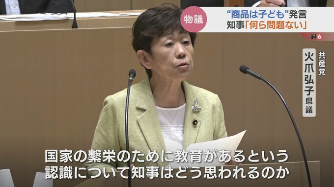 共産党 火爪弘子県議「子どもは商品だ。国家の繫栄のために、教育があるという認識について知事はどう思われるのか。ご答弁を頂きたい」