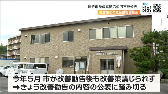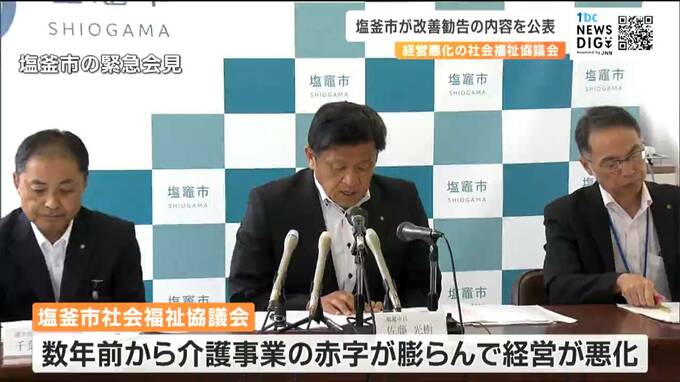 宮城県塩釜市の社会福祉協議会の経営が数年前から悪化しています。しかし、一向に経営改善が進まないことから塩釜市は24日、緊急の会見を開き内部統制の徹底や組織態勢の見直しなどを盛り込んだ改善勧告の内容を公表しました。