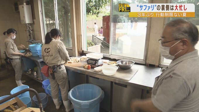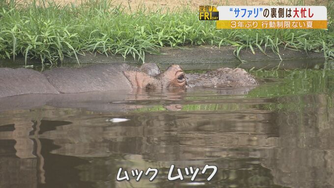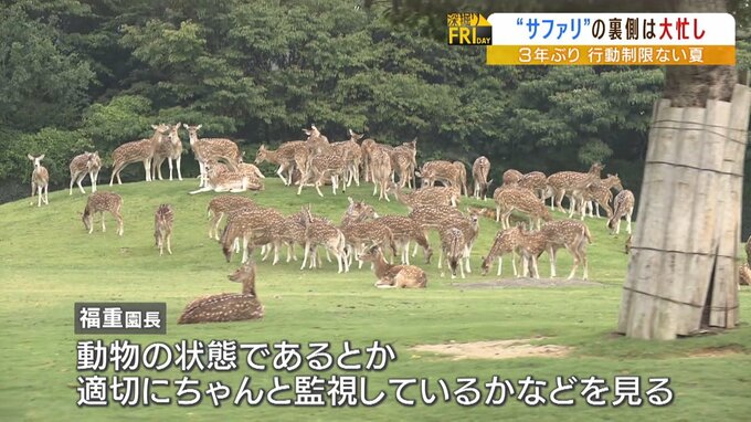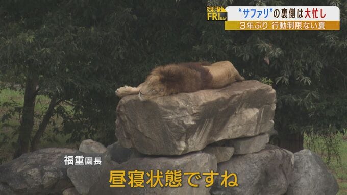 自虐PRで話題「姫セン」3年ぶり"行動制限がない夏"で『ドライブスルーサファリ』や『ナイトサファリ』が大人気!名物園長も大忙し 毎日放送 2022年8月22日(月) 16:11 国内 話題・グルメ 『ドライブスルーサファリ』では園長自ら「動物の状態」など確認 車で動物を見て回る「ドライブスルーサファリ」は大渋滞。人手が足りないため、園長自ら状況の確認に回ります。 (姫路セントラルパーク 福重祥一園長) 「動物の状態であるとか、適切にちゃんと監視しているかなど、そういうところを見る」 (姫路セントラルパーク 福重祥一園長) 「ライオンは群れですね。人気ですね、頭数もいるので。昼寝状態のライオンもいますね。エサもらえなかったらもう寝るしかないですよね」 (手をたたいて動物に話しかける福重園長) 「ムック、ムック」 (姫路セントラルパーク 福重祥一園長) 「(Q人の入り方は?)全然違いますね。みなさんも、うずうずはしていると思うんですよね。今までそういうことができなくて」 お客さんへの対応に追われる一方で、動物の飼育に欠かせないエサの量は変わりません。飼育員自らが動物ごとに大小様々に切り分けるなど休む暇はありません。