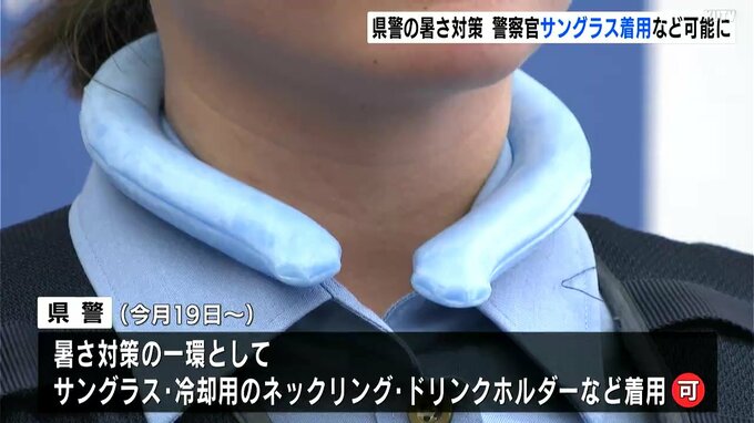 サングラスのほかに、冷却用のネックリングやドリンクホルダーなど、暑さ対策グッズの使用も認められていて、警察官として品位を保つようなデザインであることが条件です。