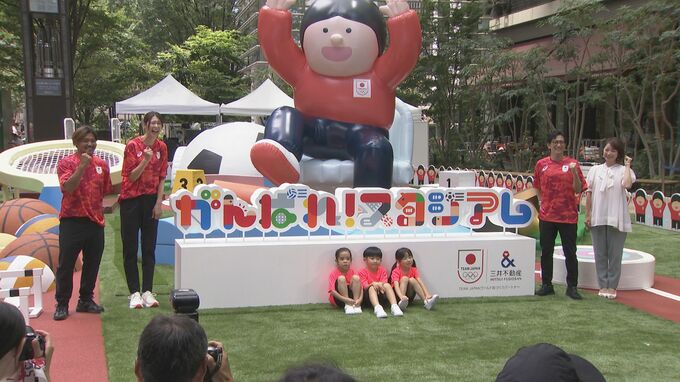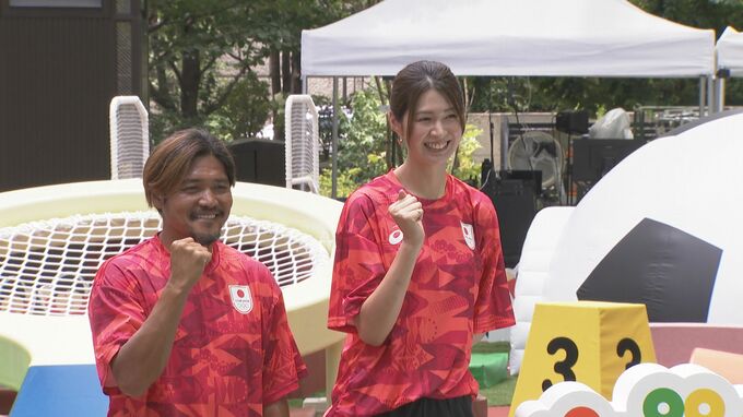 元サッカー男子日本代表の大久保嘉人さん、元バレーボール女子日本代表の木村沙織さん、お笑いコンビ・アンタッチャブルの柴田英嗣さん、フリーアナウンサーの松丸友紀さんが、パリオリンピック™に合わせ26日から行われる「がんばれ!スタジアム presented by 三井不動産」を盛り上げるため、『あと1日!三井不動産 TEAM JAPAN 応援イベント』に登壇しました。