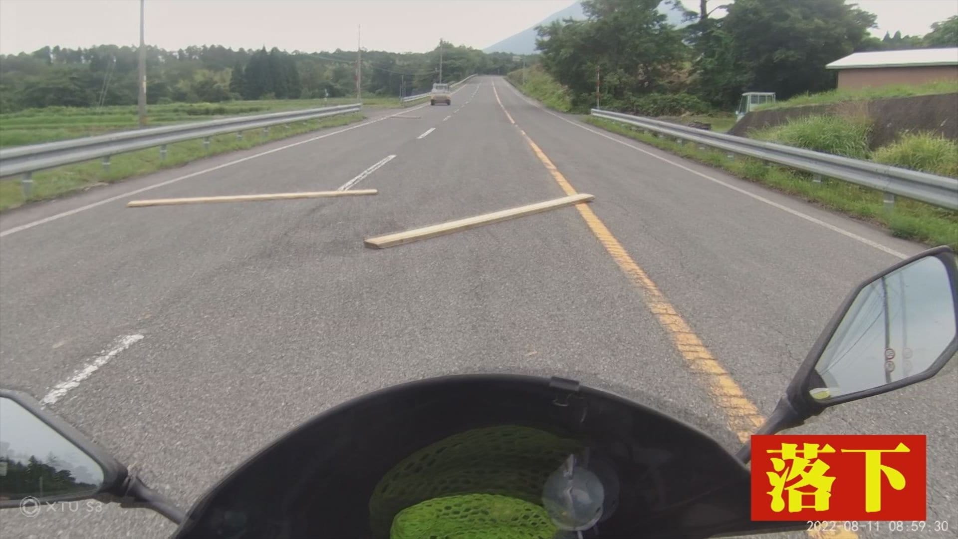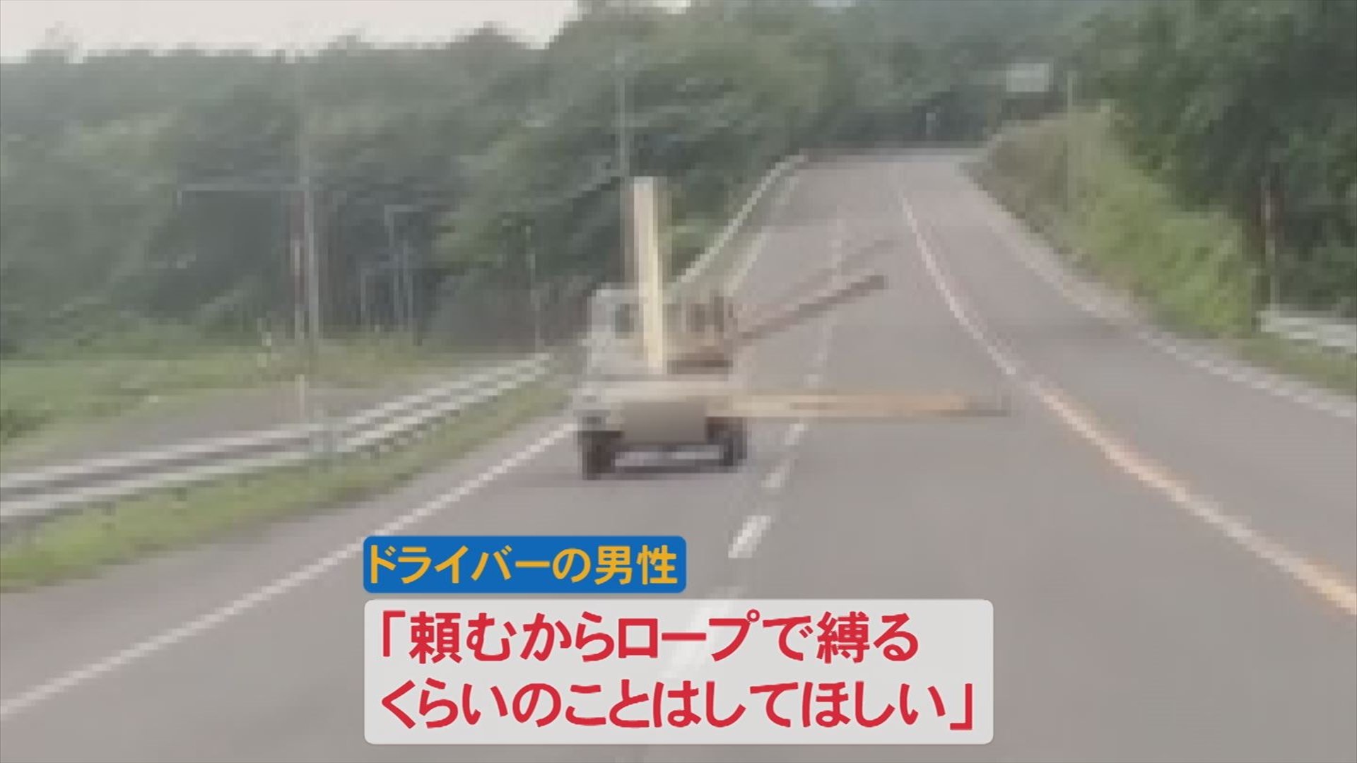 バイクを運転していた男性は十分な車間距離を確保していたため、危険を回避できましたが、木材が男性に直撃していた可能性も十分に考えられます。