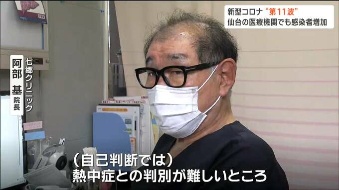 仙台市若林区の七郷クリニックでは、7月に入り診察を受けた患者の7割から8割が新型コロナに感染しているといいます。多くの患者が発熱やのどの痛みを訴えていて、阿部基院長は熱中症と症状が似ていることから熱が出た場合は迷わず医療機関を受診すべきと話します。