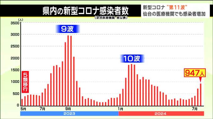 「第11波」とされる今回の感染拡大。新型コロナが2023年5月に5類に移行してから宮城県が公表した県内の感染者数の推移です。2023年は夏から秋にかけて流行が拡大。今回も7月に入り感染者数が増えていて、「暑さ」が背景にあります。