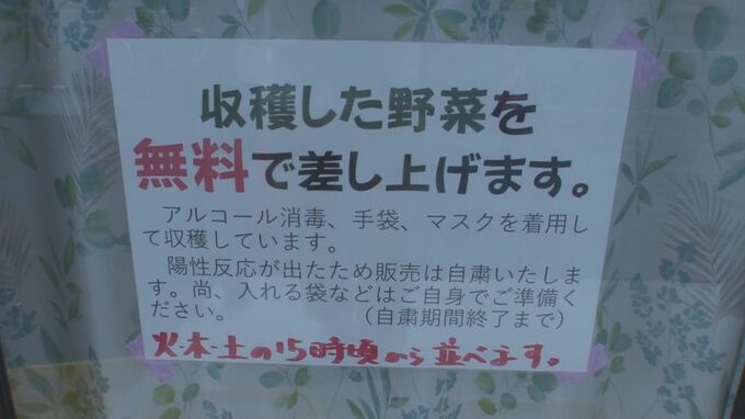 夫婦は「無料配布をきっかけに自分たちが作る野菜のおいしさを知ってほしい」としていて、25日からは、対面販売を再開する予定です。