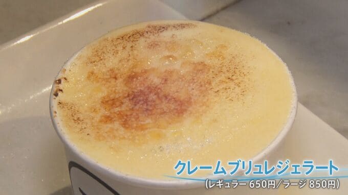 マイナス196度の超低温で気化する液体窒素の特性を生かしたスイーツなんです。人気の「クレームブリュレジェラート」(レギュラー650円/ラージ850円)。その特徴は…