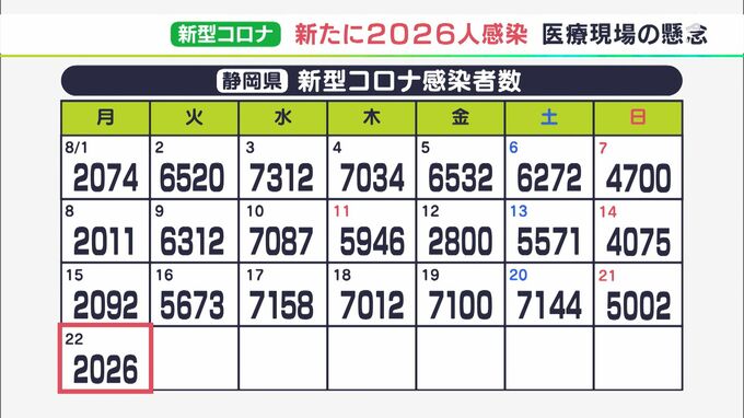 8月22日は静岡県内で新たに2026人が、新型コロナウイルスに感染したことが分かりました。新たな感染者を自治体別に見ますと、浜松市で530人、静岡市で325人、三島市で130人などとなっています。先週の月曜日(8月1…