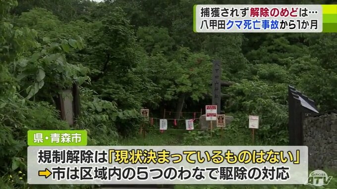 県や青森市によりますと、規制の解除については現状決まっているものはなく、市は区域内に仕掛けた5つの「わな」でクマを駆除できるよう対応しているとしています。