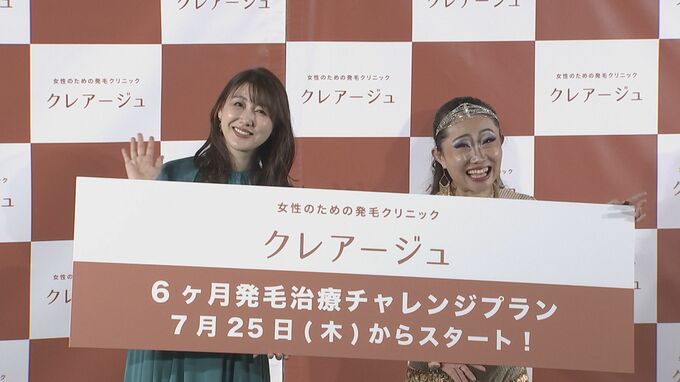 タレントの安めぐみさんと、お笑い芸人のキンタロー。さんが、クレアージュ「6ヶ月発毛治療チャレンジプラン」ローンチ発表会に出席しました。