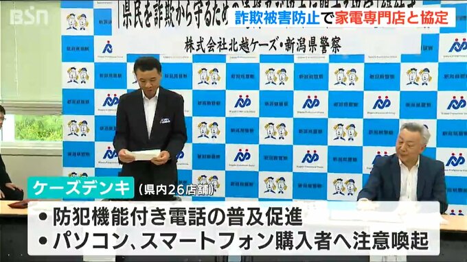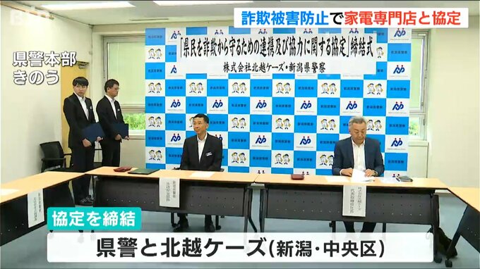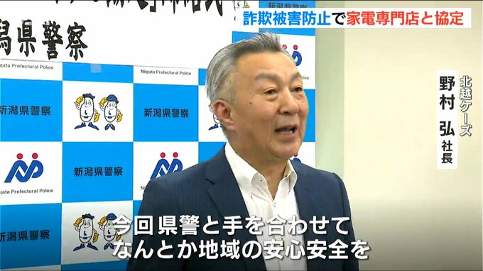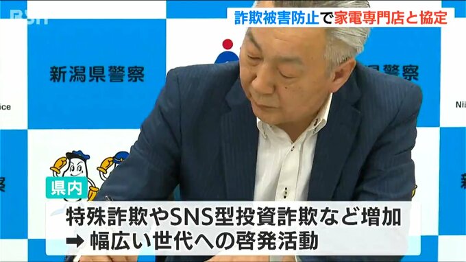新潟県内で特殊詐欺やSNS型投資詐欺の被害が増えていることを受け、幅広い世代に啓発活動を行おうと、県警と家電専門店が連携協定を結びました。