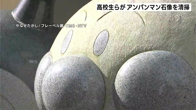やなせたかしさんゆかりの高知県南国市の商店街に設置されているアンパンマンの石像をきれいにしようと、地元の高校生らが清掃活動を行いました。南国市の後免町(ごめんまち)商店街にはアンパンマンキャラクター…