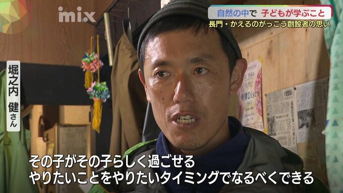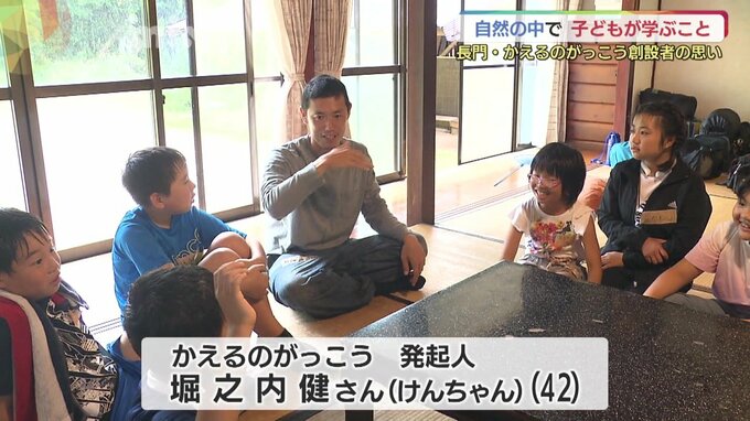 かえるのがっこうの発起人「けんちゃん」。奈良県出身の堀之内健さん(42)です。スタッフは家族を含めて4人。自由に楽しむことが子どもたちの成長につながると考えます。